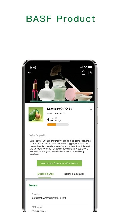 巴斯夫app是一款专业安全便捷好用的化妆品信息服务软件,用户可以在这里查询到自己所购买化妆品的详细参数信息,比如产地、灵感、配方、成分等都会有详细的数据分析,让您买的更放心。