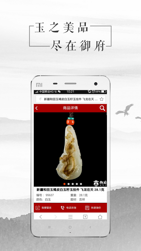 御府创办于2002年,座落于上海新华路新华别墅,上海高端海派玉雕工作室,荣获“2015年度玉雕品牌工作室”称号。也是集玉器设计、雕刻、批发、文化传播和电子商务为一体的专业公司。在2009年中国工艺美术百花奖中展露头角,紧接着连续至今在百花奖,神工奖,玉龙奖,陆子冈杯,良渚杯中华龙奖获得总计超150座获得奖项。御府下有6个工作室,分别为人物、神佛、花鸟、山水、仿古工作室。其中对佛,钟馗、罗汉、济公、财神、渔翁等人物出彩。