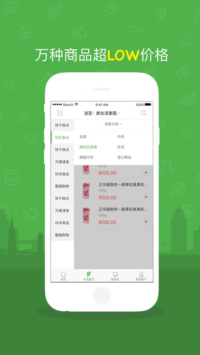 - 超过3000种超市精选商品,您可足不出户,手机下单,最快20分钟闪电送货到家;