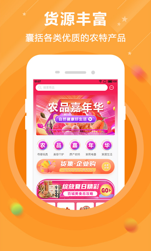 货源丰富:囊括水果蔬菜、禽畜蛋肉、生鲜水产、农副食品、菌菇鲜货、粮油干货、居家日用等等各类生活必备产品。