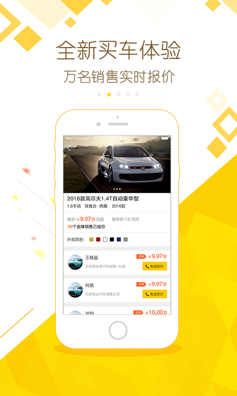 【应用描述】新浪买车APP,是依托新浪和微博庞大的高质量用户基础,基于大数据和上门试驾服务的优势,由新浪汽车出品的全新一站式试驾购车产品;在这里,购车用户可免受水分车价打扰,知晓可信赖的汽车购买导向,进行个性化定制的自由试驾【独特优势】购车服务:全新体验,买车也能这么好玩1. 买车社交神器,买车经验、用车体会随时掌握!2. 汇聚海量团购,网罗全城靠谱底价!3. 更多创新玩法、海量购车优惠敬请期待!试驾服务:包含新浪汽车我试试全部功能1. 随时随地预约,专业陪驾员准时送车上门。2. 路线自拟,自由选择碎片化时间进行试驾。3. 1小时/30公里,真实路况超长试驾体验。4. 选车具体到配置,风尚or豪华,想买哪型试哪型。