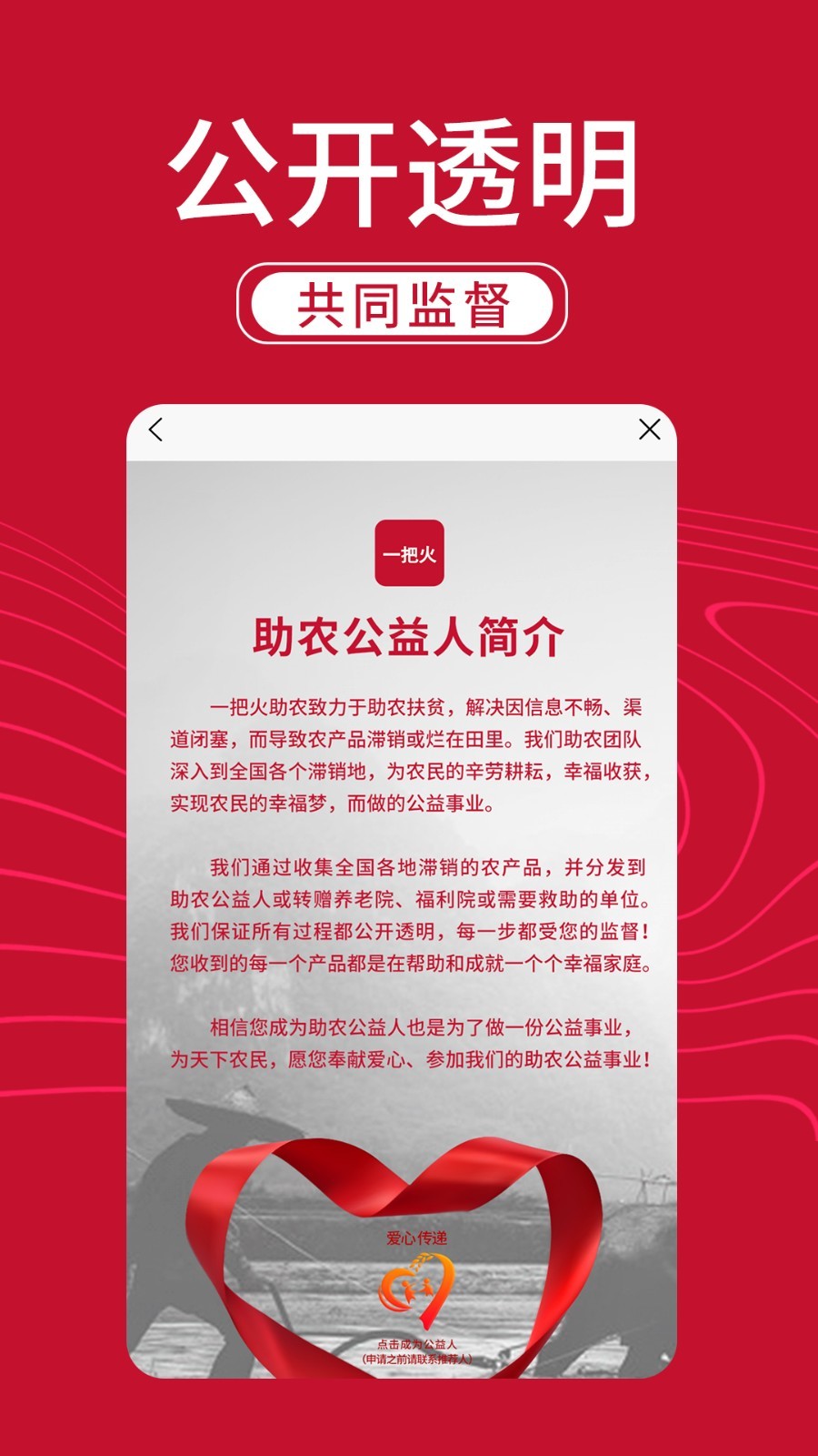 一把火助农商城,由苏州农家舍农产品有限公司开发运营、管理,致力于解决因信息不畅、渠道闭塞,而导致农产品滞销或烂在田里,我们商城团队深入到各个滞销地,收集滞销农产品展示在商城内,广大爱心用户可在商城内选购需求农产品、农副产品,为辛劳耕耘的农民,收获一份安心。我们诚邀您的加入共同监督,共筑农民梦!