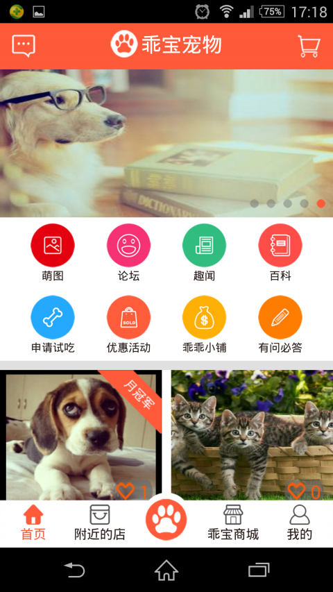 乖宝宠物APP,这里有喂养指南、美食商城、爱宠百科、萌图趣闻、附近门店,还可与千万爱宠网友一起互动分享。