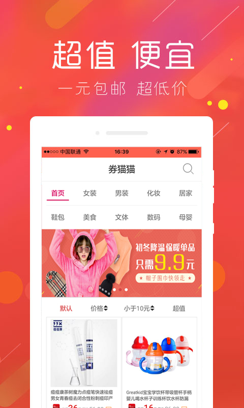 2、海量优惠:上万款白菜价商品,一元包邮到家,把零用钱用到刀刃上;