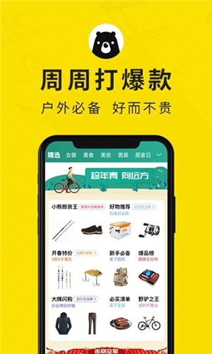 小熊探秘app聚集26年户外产业资源,为喜欢钓鱼、登山、骑行、滑雪、徒步、游泳等户外E族们提供的电商平台。