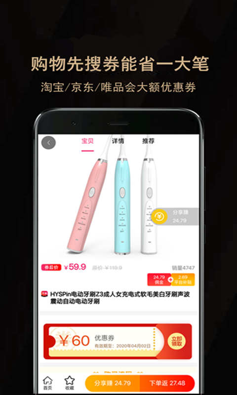 3. 一键分享赚佣金:各种社交工具一键分享,免费成为超级会员,随时随地赚佣金,赚返还佣金!