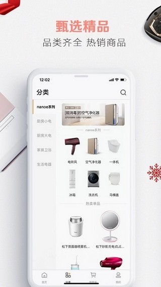 涵盖家装卫浴、个护健康、厨房电器、生活电器等上百款好货,品类齐全,品质优上。轻松Get品质生活!