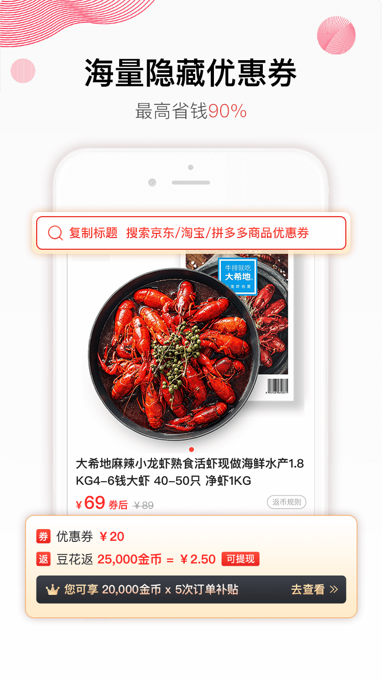 【网购省钱必选工具】电商优惠券一网打尽,购物不再花冤枉钱!· 新人领免单【0元购】,数十种商品统统白拿;· 比淘宝京东直接买还省50%;行业超高返利;· 每天为你精选千余件超性价比商品,超值又划算;· 无门槛提现,安全,便捷,值得信赖!