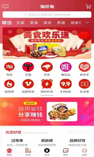 淘呀淘APP,一个专注于生活购物返利,网购省钱的APP,汇集了淘宝、天猫、京东等平台高佣返利产品。线上海量超人气精品好货,微商爆款一手货资源,为消费者提供服装配饰、彩妆护肤、母婴产品、家居日用、数码家电、和美食等超过百种类目和低价正品货源,帮助消费者买到性价比的商品。