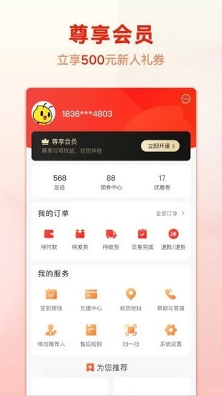 2.尊享会员立享500元新人礼券