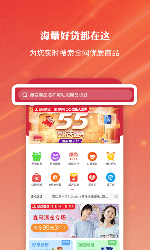 多点优选,社交电商开拓者,国内新锐手机导购APP。用户可通过APP获取各大主流电商的优惠信息和返佣,让用户以更低的价格买到优质好物,体验全民优选的实惠和乐趣。