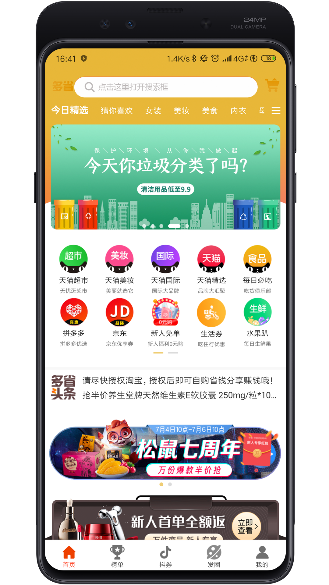 多省APP--一款网购既能省钱又能赚钱的购物APP! 多省与百万商家合作,每天上新专享优惠券商品,全部人工筛选,让您购物更省钱。 多省APP覆盖淘京拼90%以上优惠券商品,超级搜商品优惠券,想买的都能找到优惠券。