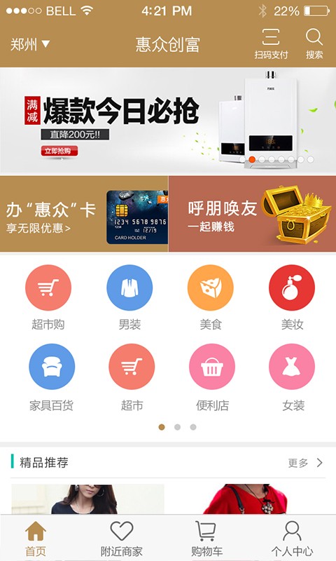惠众创富是河南创惠富众信息技术有限公司进行推广研发的基于内部会员卡系统的购物系统,内部涉及服装,家电,用品,等几十种分类商品,应有尽有,同时拥有健全的内部购物体系,三级分润等内容,享受不一样的购物体验。