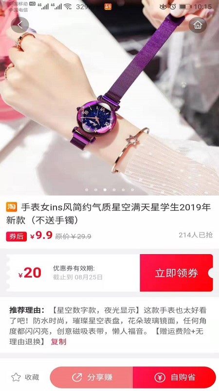 支持在线查看推荐商品信息,可以选择购买或推广商品;