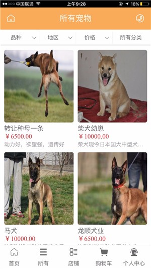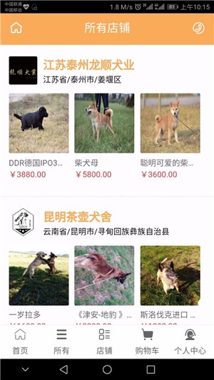 在线就可以浏览各个店铺的信息了,这样就能让用户及时的找到需要购买的宠物狗;