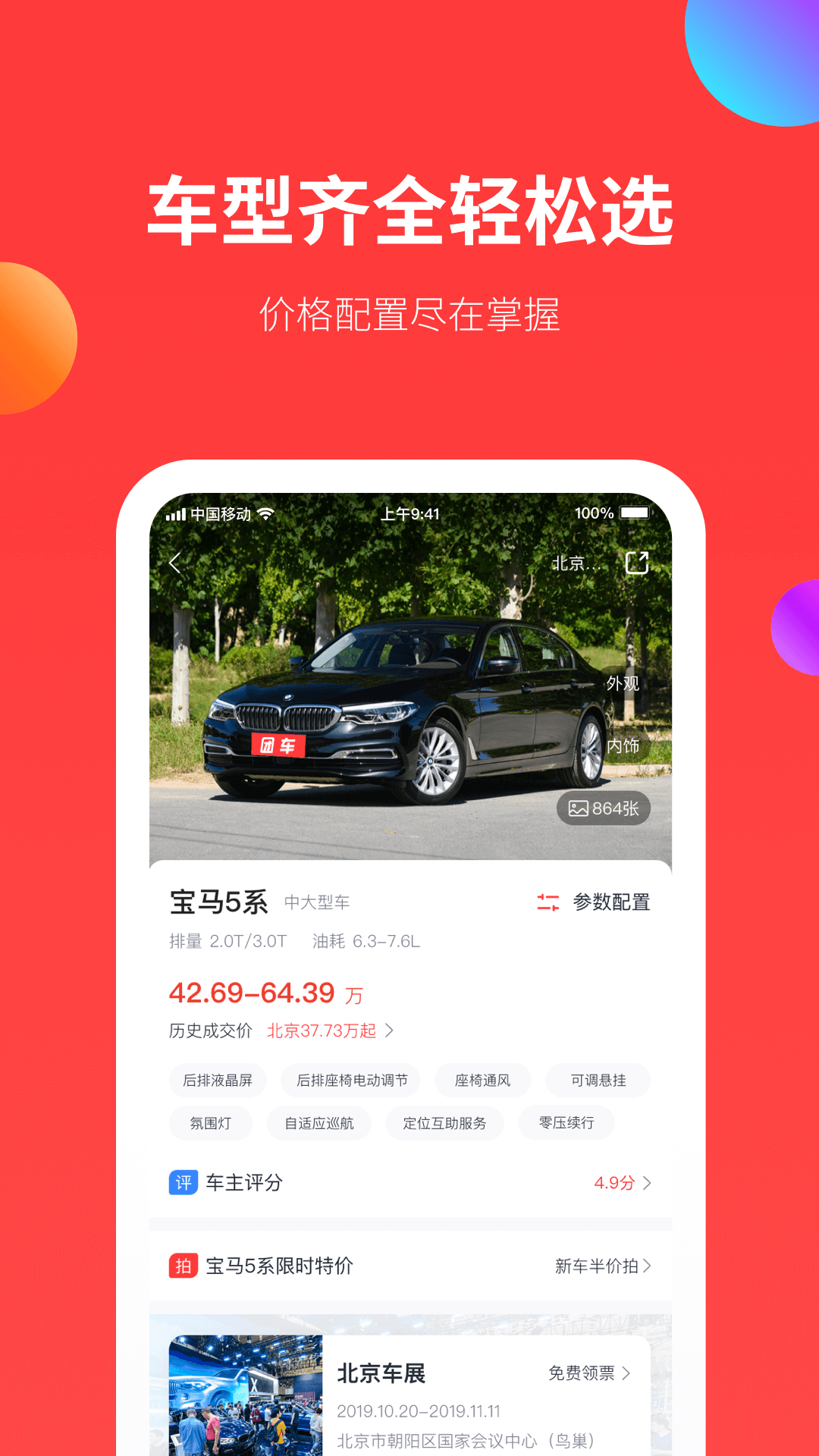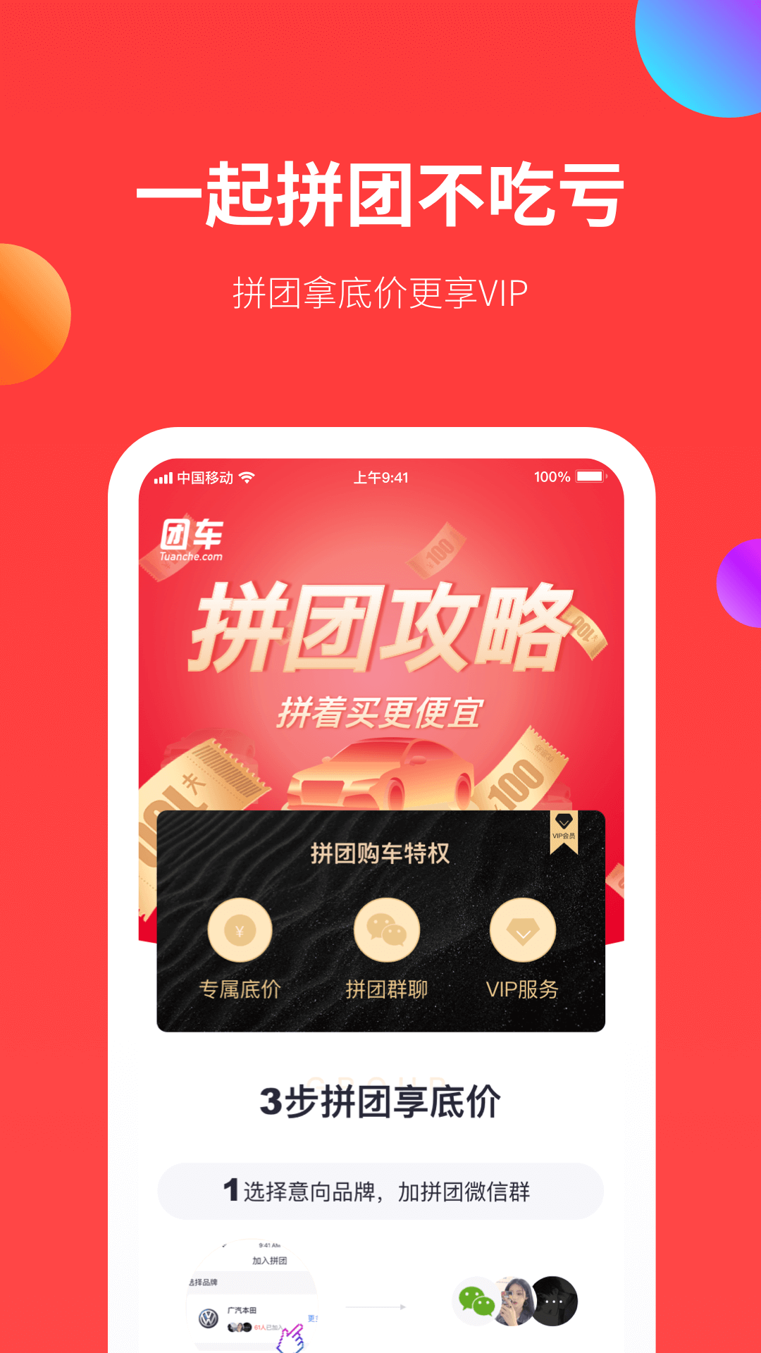 1、新车团购:还在发愁没时间去看车?还在与4S店销售讨价还价?随时团购爱车,一次询得全城最底价,购车顾问全程陪您看车、订车和购车,还能让朋友圈好友帮忙砍价,最高可砍5000元。