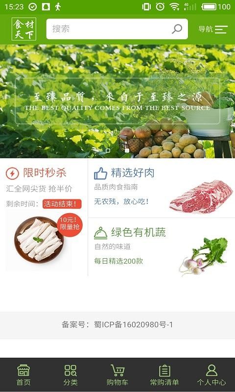 食材天下app是一款健康食材采购平台,平台生鲜食材均由产地直供,用户只需动动手指就能轻松购买,快速为您送货到家。