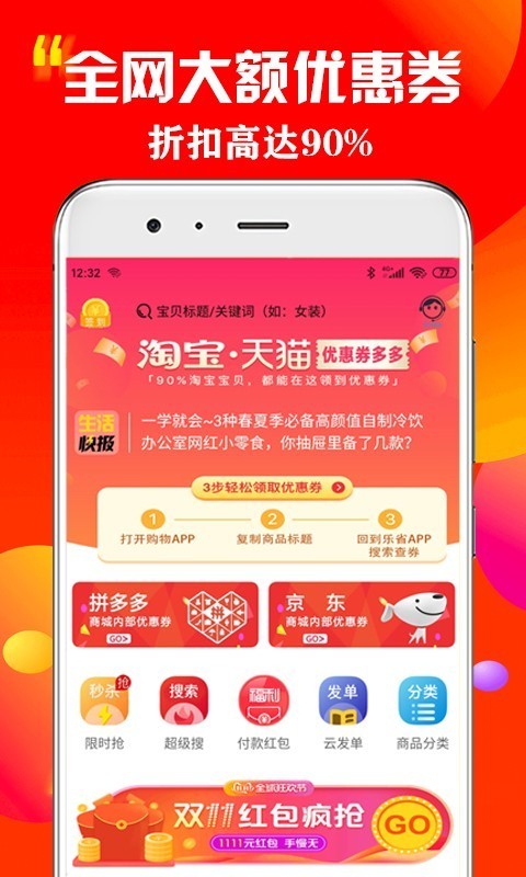 乐省app每天更新商品和优惠券信息,十余万种淘宝商品优惠券限时抢。