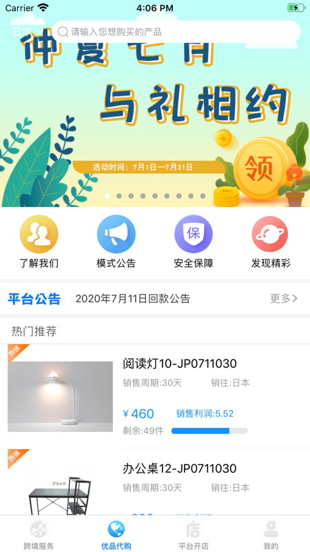 “全民外贸”隶属于三益(郑州)贸易有限公司,以“互联网商城”为基础,基于公司对中国零售商品出口业务的优势,以“代购代销”的形式为平台用户提供出口商品的货源代购及出口商品的托管销售,通过互联网商城实现中国人人人可以做外贸,打造“全民外贸”新电商平台模式,给平台用户提供目的国出口商品货源代购、报关、海运、清关、仓储、销售、配送等一站式营销托管服务,平台设置固定的销售周期和利润,到期完成“代购成本”+“代销利润”的回款。