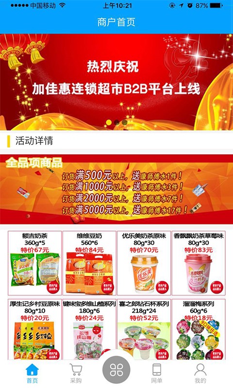 加佳惠app是一款电商购物应用,超市商家通过加佳惠app可以随心在线选购商品,品类齐全,价格实惠,让超市进货更容易。