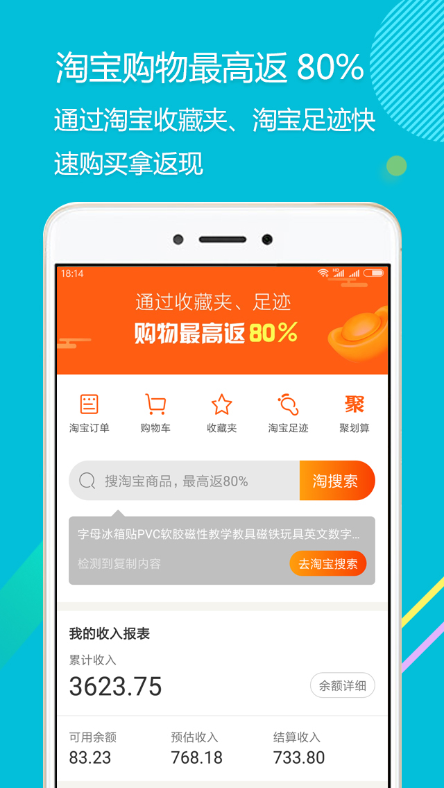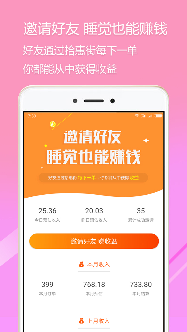 通过拾惠街应用, 让你在淘宝的每一次购物都能拿到返现