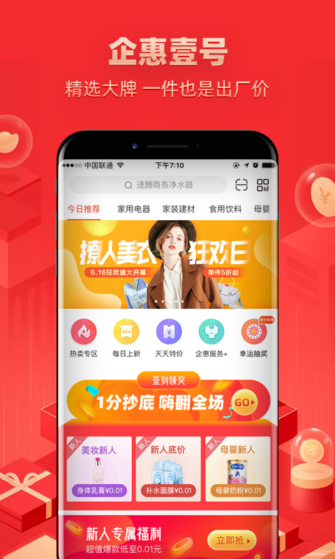 “企惠壹号”是一个社交新零售商品购物APP, 服务于家居、家电、日用百货、农副产品、新奇特礼品、在线服务。融合线上线下 ,赋能各行各业传统零售转型升级,多家品牌企业入驻,约万款爆品任您选。让每位用户都能成为分享经济的践行者、受益者。