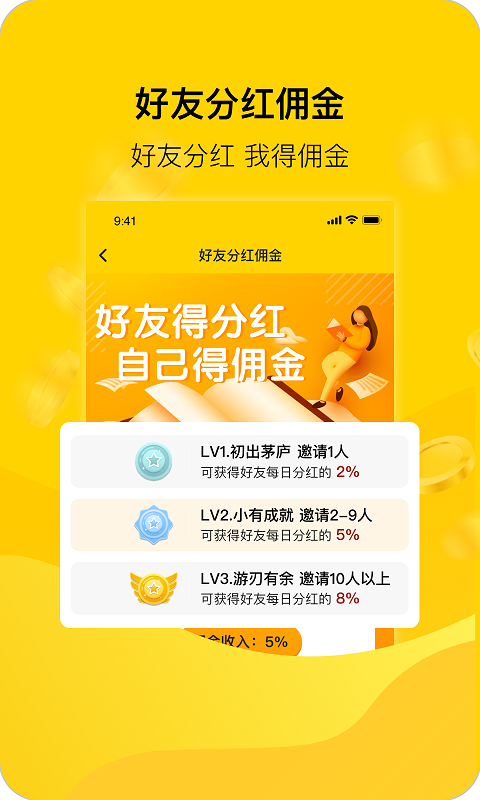 通过精细的大数据技术算法,APP内展示的商品及特色服务,均根据商品属性、用户浏览习惯及分红等进行排序,保证页面0广告,清爽整洁。