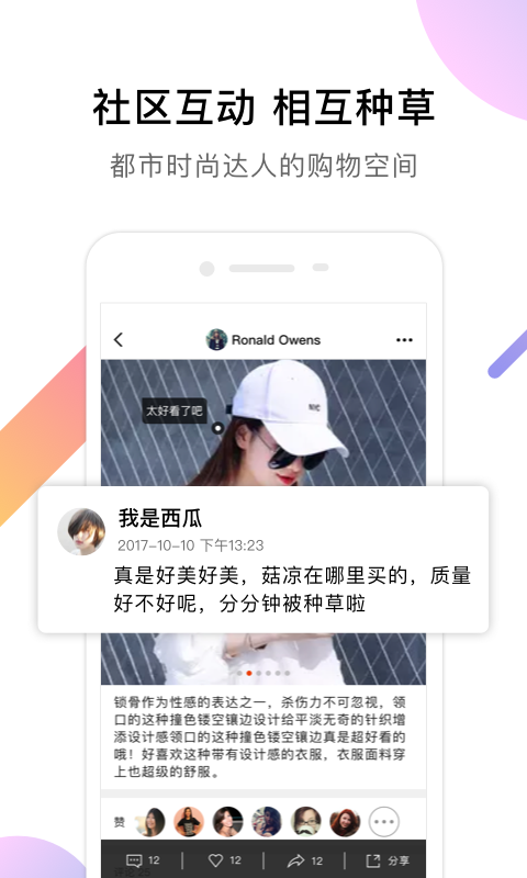 4. 强大的社交功能,买家、卖家可随心分享微秀,并与商品关联。