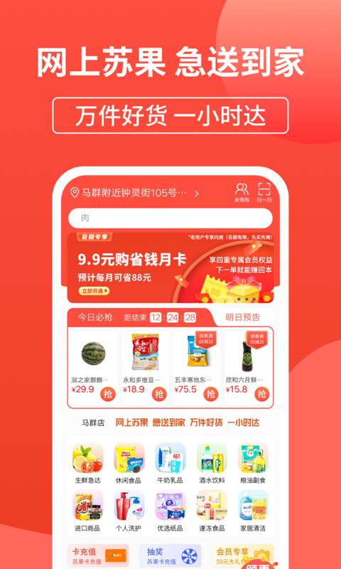 南京本地快买平台,苏果网上商城,果蔬生鲜及万件生活必需商品,为您急送到家。我们把琐碎的生活需求用更便捷的方式带给业主们,苏果上门、即点即达!品质生活、效率生活。