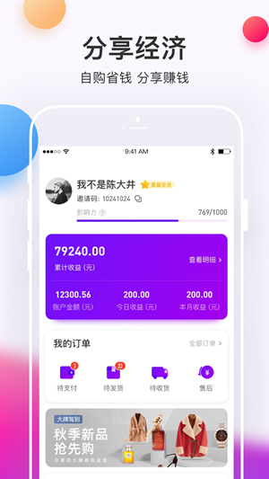 作为店主,可以通过手机,链接圈子与海量优选好货,除了自己多赚钱,更能让亲朋好友少花钱;作为顾客,可以通过手机,链接到全球海量优质商品源头,享受到更加优惠的价格,实现购物省钱又省心。