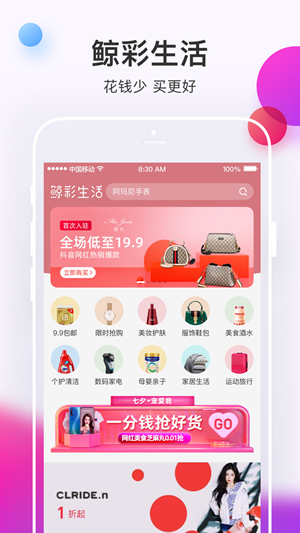 鲸彩生活app是一个家庭精选商品电商平台,鲸彩生活app整合中国优质供应链,鲸彩生活app精选全品类商品,呈现超级性价比,让每个家庭的线上购物省心、安心、放心。