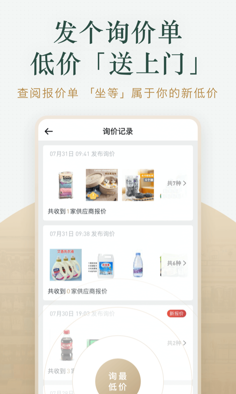一键解决复杂的比价流程,可查看全市最低价,同时展示购物车总商品数量。