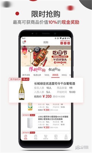 【组团抢购】选择心仪产品邀请4名好友一起参与抢购,通过趣味答题竞赛获得购买权,获得购买权的用户可选择抢购价购买商品,也可以转让购买权给好友,增加购物趣味性。