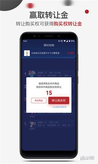 【限时抢购】规定时间内报名参与平台发布的抢购活动,通过趣味答题竞赛获得购买权,获得购买权的用户可选择抢购价购买商品,也可以转让购买权获得收益。