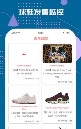 监控全球潮流球鞋的发售、突袭及补货信息,包括NIKE官方、adidas官方、以及覆盖全球超过400家网站及时推送提醒,让你不错过任何一双球鞋的抢购机会,轻松抢购 Air Jordan、Air Force、Air Max 、Yeezy、匡威、The Ten等经典系列Sneaker。