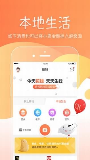 2.线下商家消费无缝接入,美食娱乐购物花掉的钱直接存入。