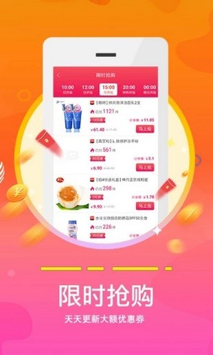 4、大额优惠券、领券立减,让用户快速领取优惠券购物;