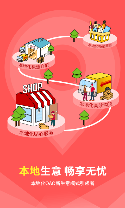 一款集本地化畅销商品、极速仓配、沟通服务于一体,以全天下老板“轻松做生意”为己任,从“进、销、管、融”全方位助力零售店老板经营生意的移动端应用。