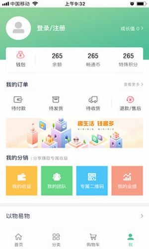 3.用户能购买普通区商品,能用积分换取商品,由商家发货