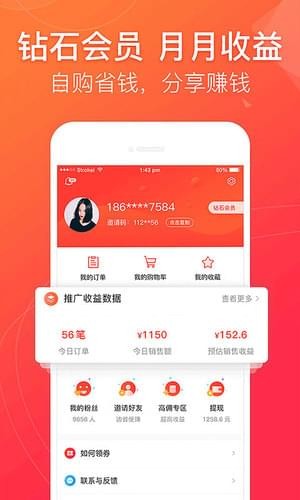 钻石会员,月月收益,自购省钱,分享赚钱。