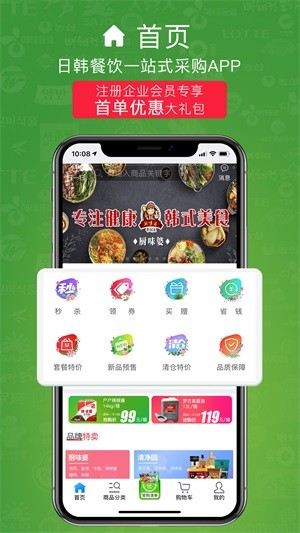绿屋商城app是一款韩日料理餐饮食品采购平台,绿屋商城app提供的均为正品好物,还支持限时特价、秒抢特价、满赠和买赠等购物活动,购物更实惠。