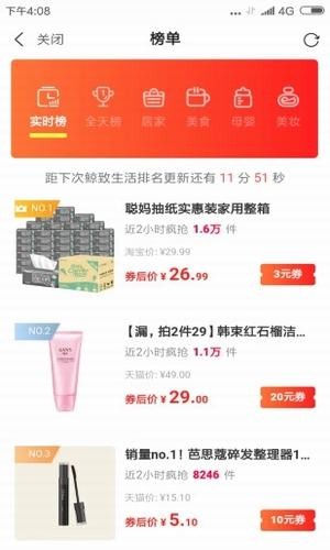 3、帮你比价挑白菜:每天精选小于6块的超值商品,优惠券轻松领,剁手不花钱。