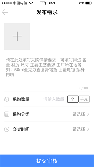 添加样品照片,说明需求详情点击发布,成功发布需求订单
