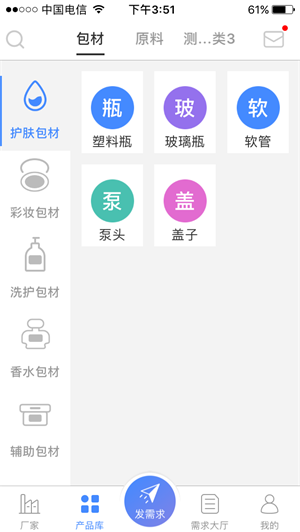 瓶瓶罐罐app是一款专注化妆品相关材料交易的平台,瓶瓶罐罐app提供需求大厅、产品库、找工厂、企业展台四大创新功能,完美结合包材供应链每个环节。