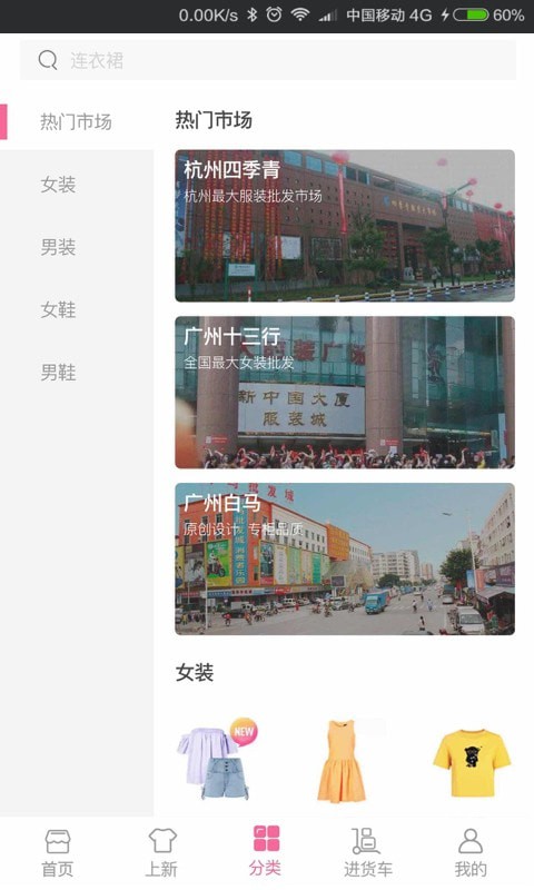 2、一手货源——货源覆盖全国,包含杭州四季青、广州十三行等一级服装批发市场。