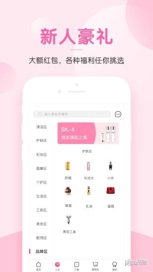 3.点击分类,清洁区、护肤区、个护区、生活区等分类商品任您选