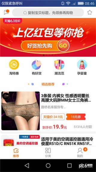 3、帮你比价挑白菜:每天精选小于6块的超值商品,优惠券轻松领,剁手不花钱。