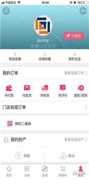 进入我的,能够查看到我的订单、我的财产等信息