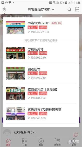 邻客蜂派app,为你带来更佳线上购物体验的手机软件。在邻客蜂派app中你可定位获取周边便利店信息,享受线上下单线下送货上门的购物体验。