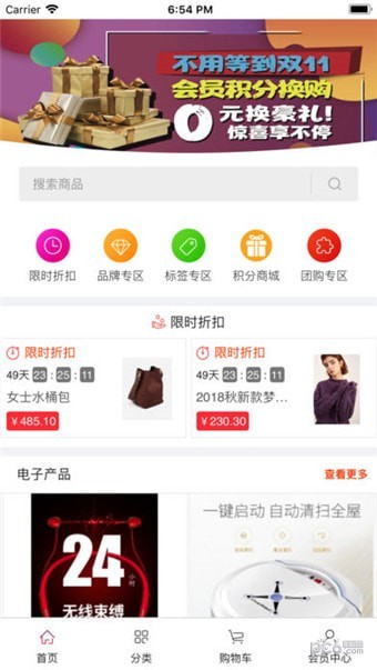 同时融e汇商城软件部分商品还设置有限时折扣、积分兑换、团购等功能,